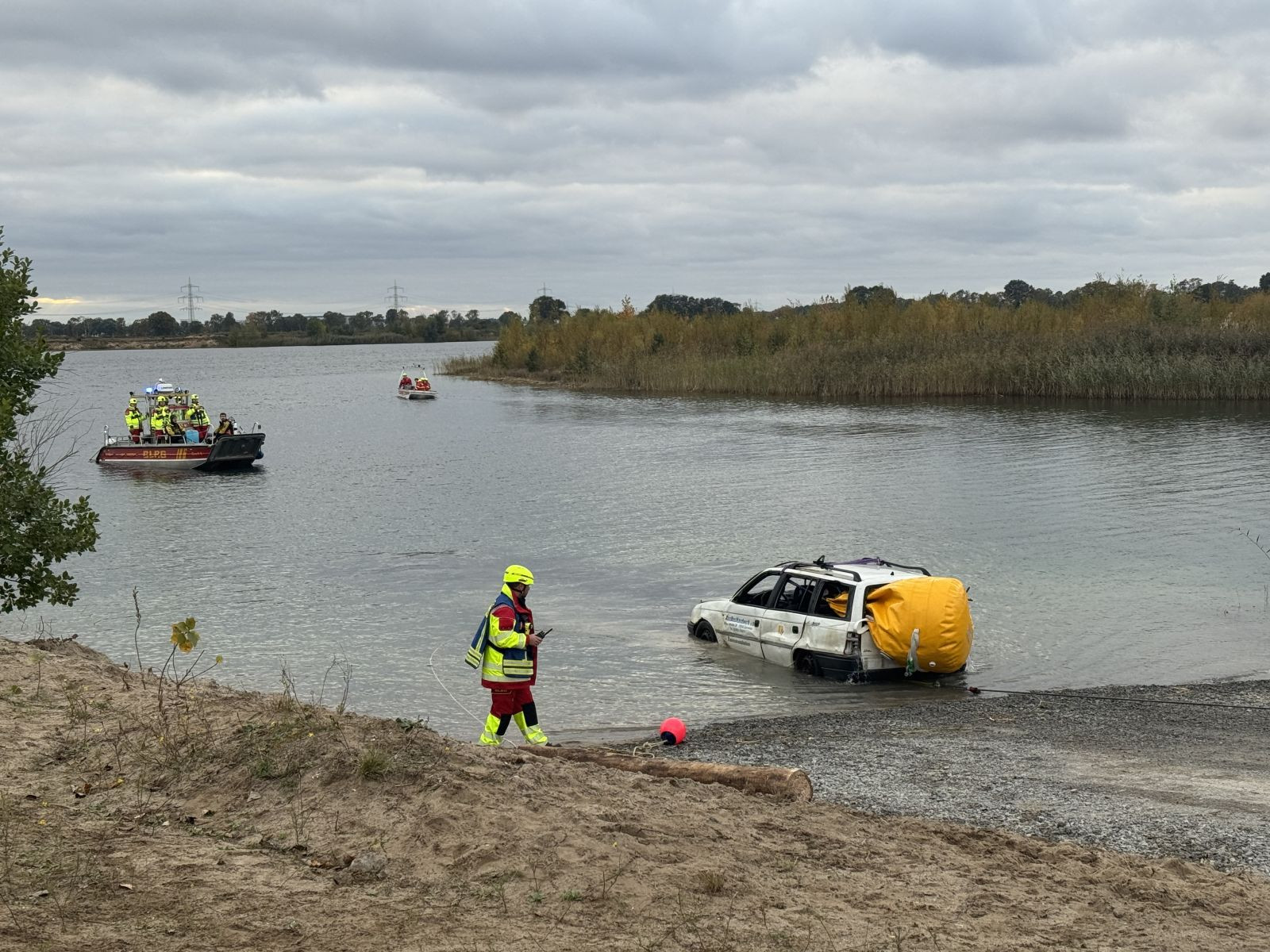Taucheinsätze zur Kontrolle auf Insassen und Bergung der Fahrzeuge mithilfe von Hebekissen
